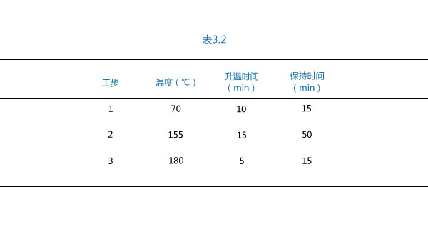 測As時采用如下消解步驟:稱取0.3g樣品小麥粉加到消解管,加入硫酸2ml,硝酸3ml,高氯酸0.5ml,左右搖動玻璃管使樣品與消解液充分混合。采用如表3.3的消解程序啟動石墨消解儀,冒白煙即可。消解完后,取下消解管,冷卻至室溫,加入硫脲+抗壞血酸做還原劑,定容待分析。
